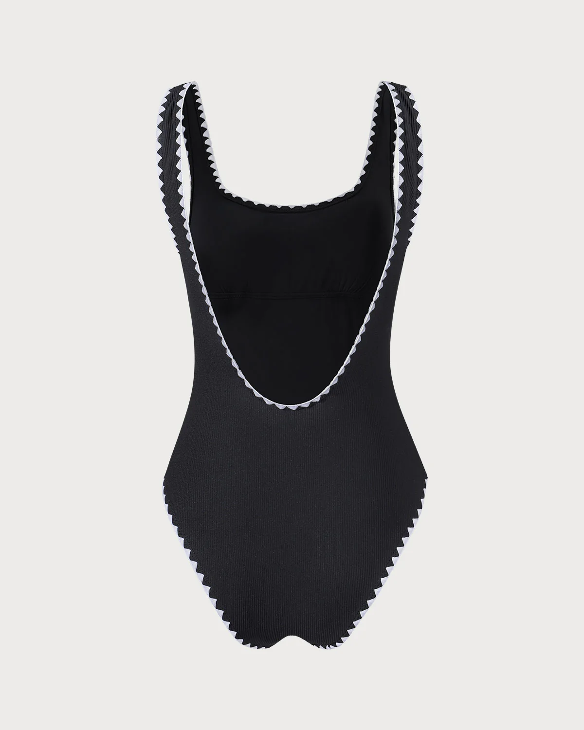 For a timeless and elegant option, this one-piece swimsuit offers a sophisticated silhouette with a contrast ribbed design, ensuring you look and feel fabulous.