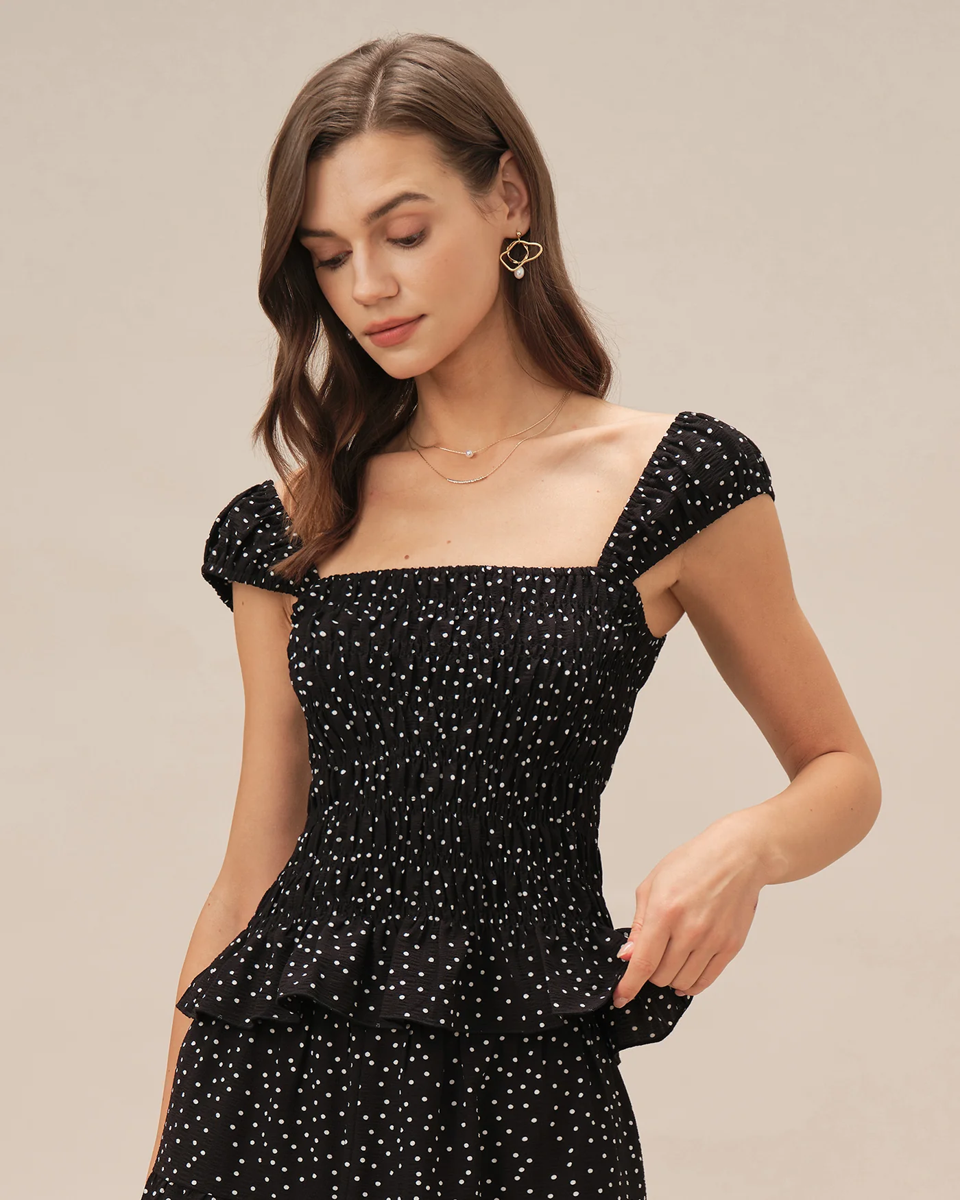 Black Square Neck Polka Dot Tank Top