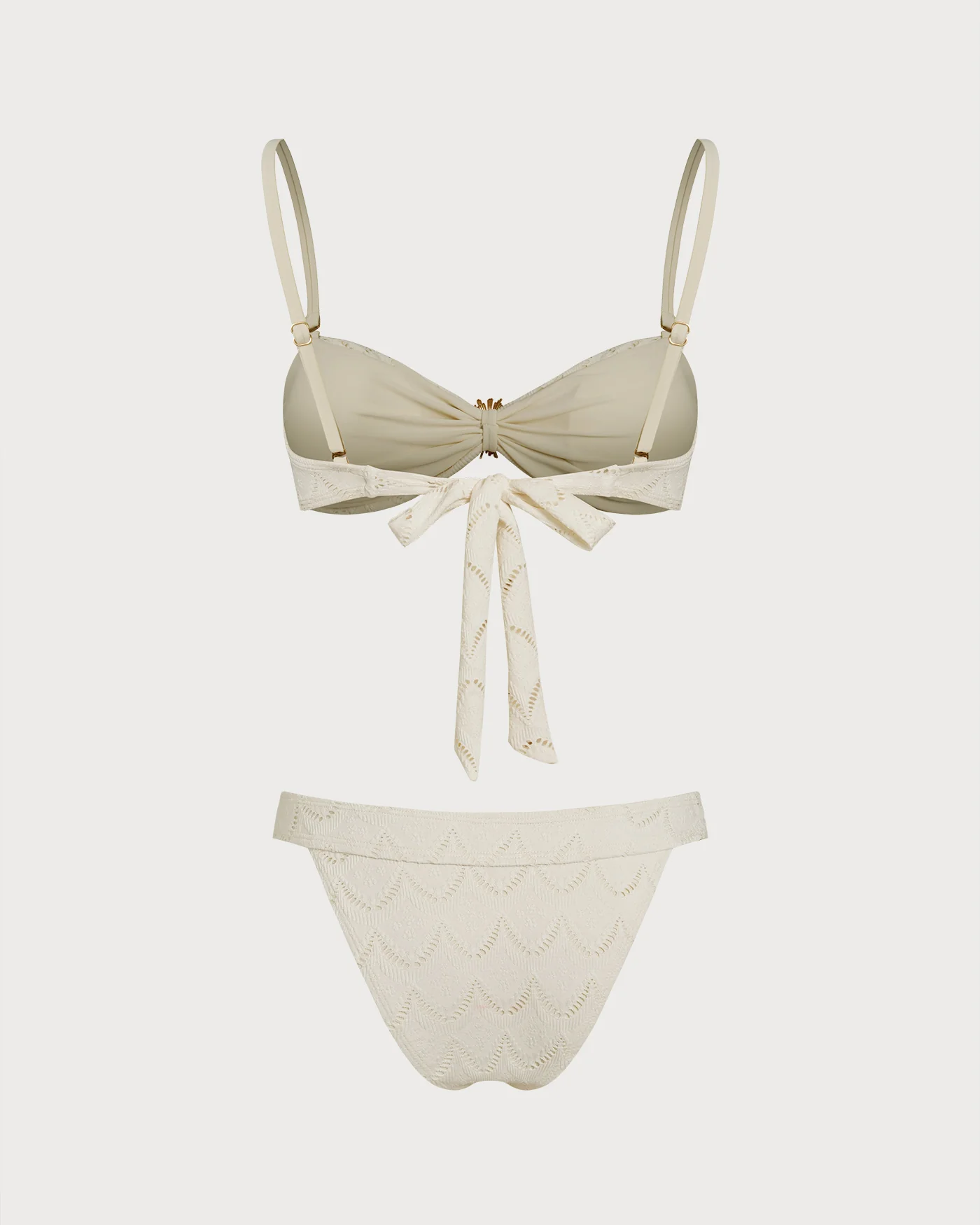 Off White Drawstring Bandeau Bikini Set