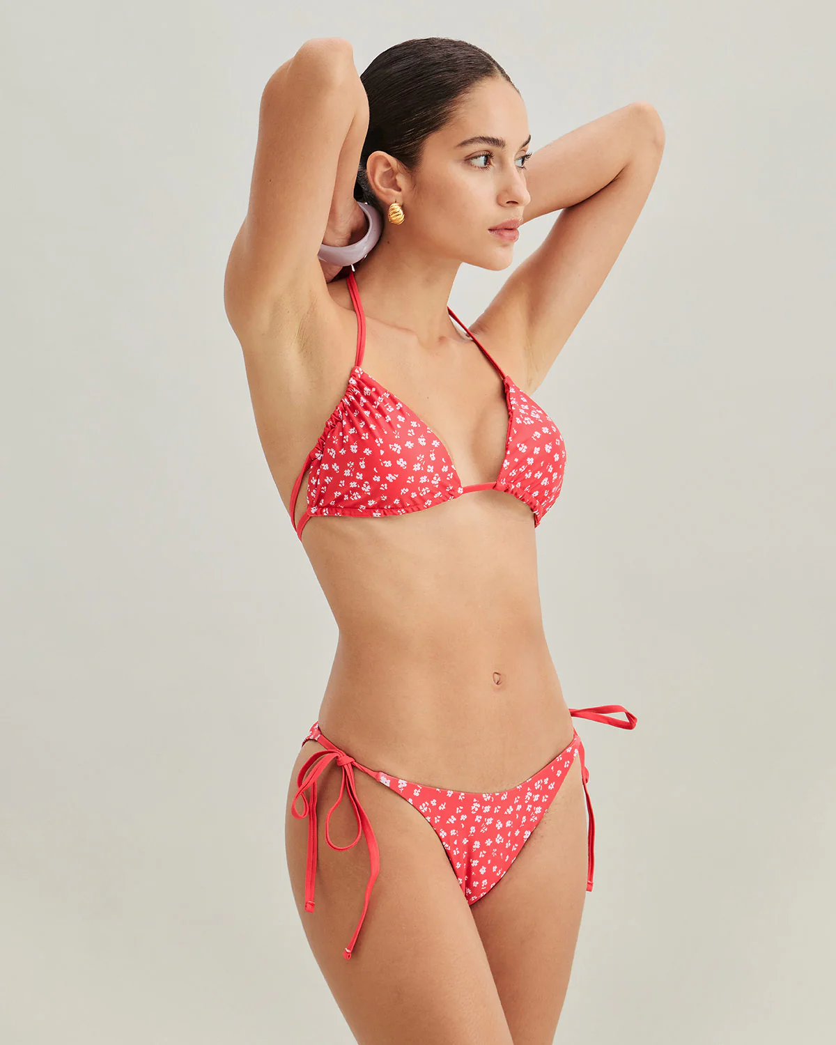 Red Floral Drawstring Triangle Bikini Set