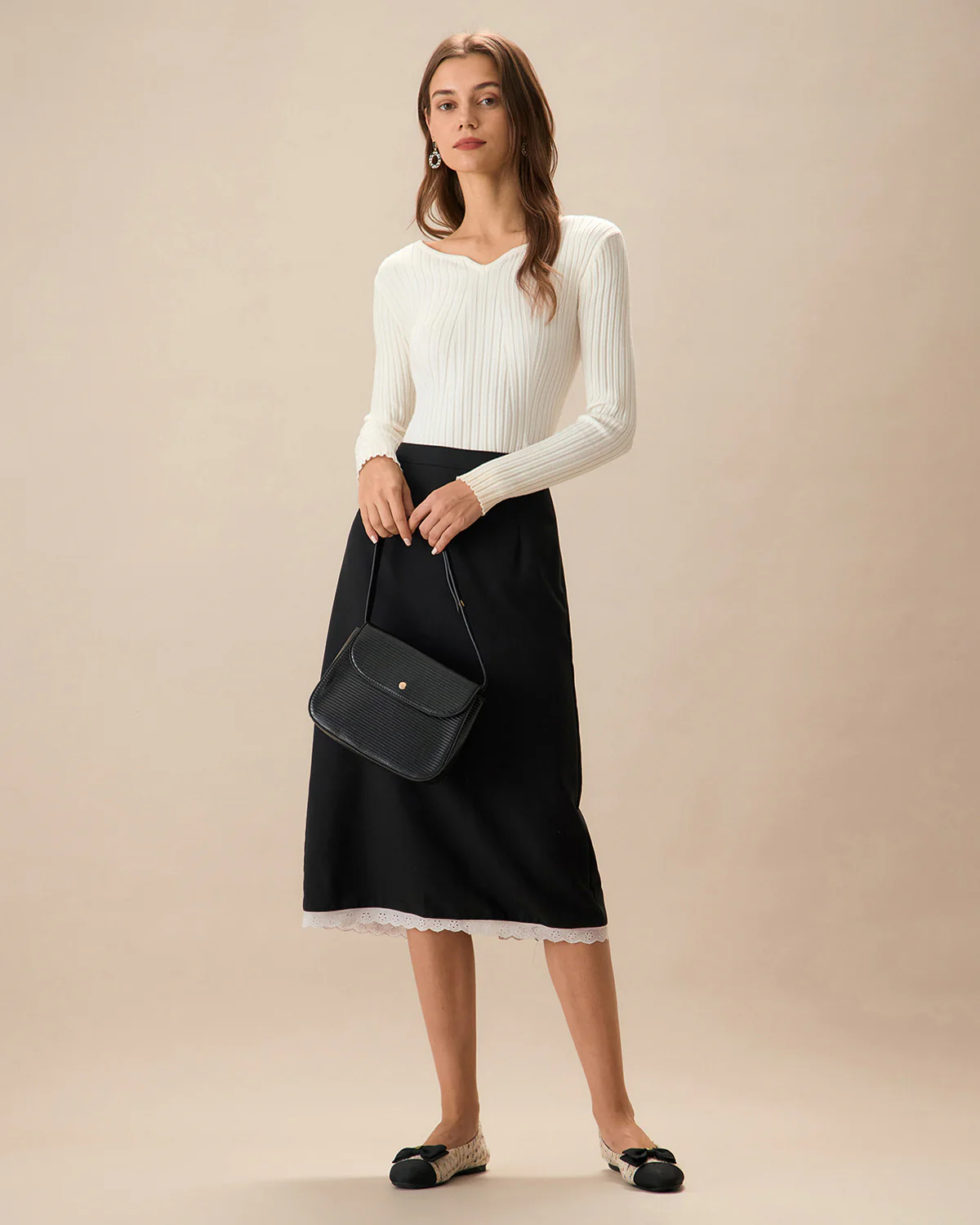 The White V Neck Teardrop Ribbed Knit Top