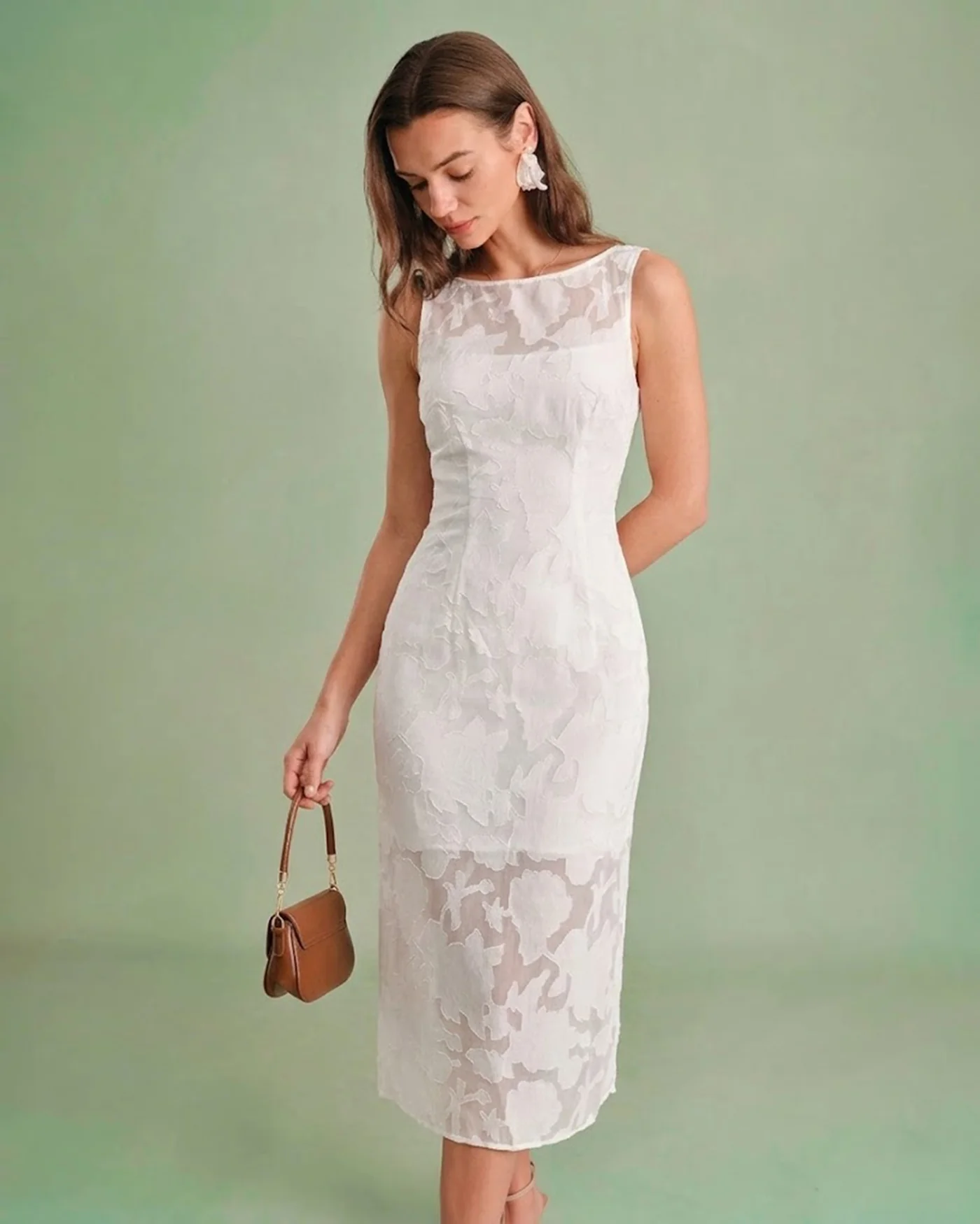 White Lace Boat Neck Midi Dress